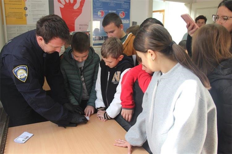 Upoznali su se s operativnim dežurstvom policijske postaje, tehnikom i opremom koja se koristi prilikom obavljanja posla, a kriminalistički tehničar im je pokazao opremu za daktiloskopiranje gdje su im uručene knjižice s otiskom prsta.